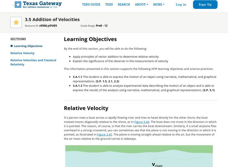 Texas Gateway: Kinematics in Two Dimensions: Addition of Velocities