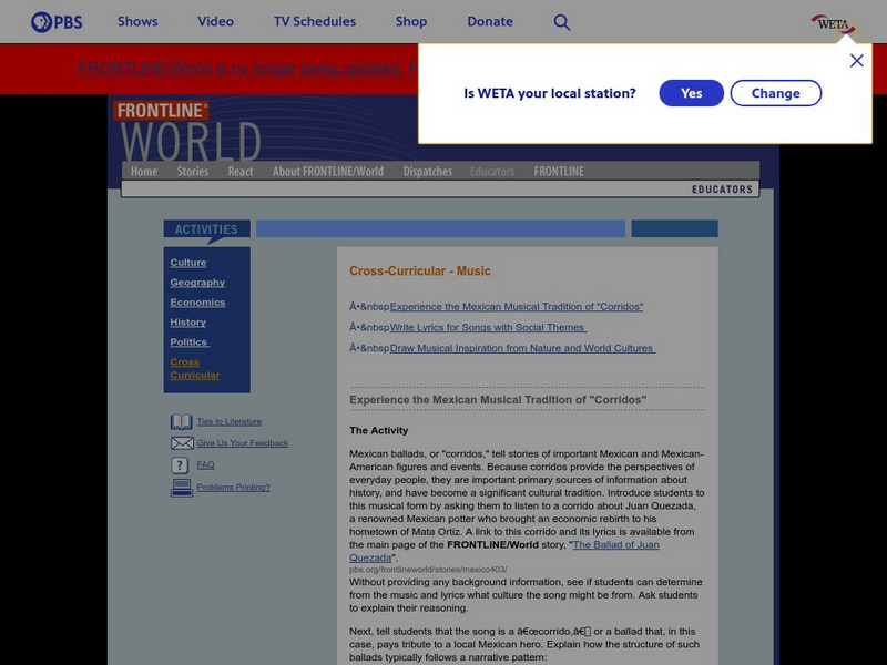Pbs Teachers: Cross Curricular Music Lessons From Frontline/world