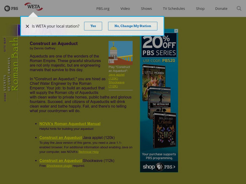 Think like an engineer and build an aqueduct in this interactive activity from the NOVA: "Secrets of Lost Empires: Roman Bath" Web site.