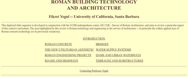This site offers information on Roman Engineering, Roman Baths, Roman Aqueducts, roads, bridges, buildings and concrete.