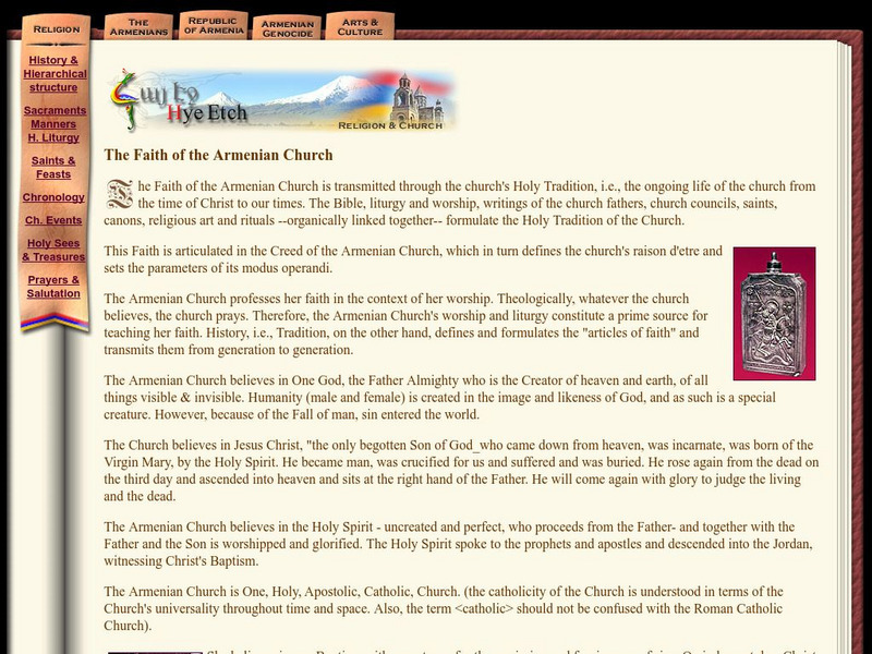 This site examines Christology from the Armenian perspective. It is interesting to note the major differences between the Armenian Christology and that of the Roman Catholic Church concerning "Earthly Religious Authority".