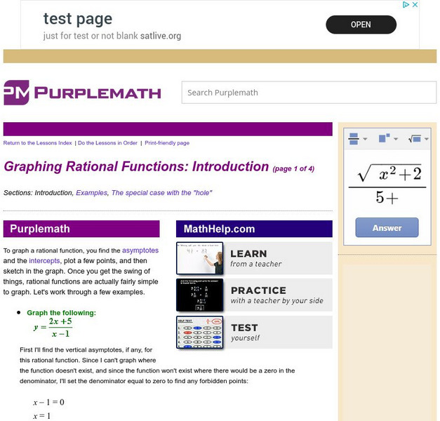 Offers a straightforward introduction to graphing rational functions. Includes an example.