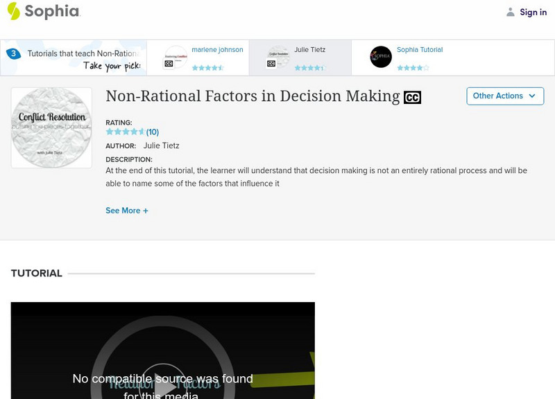 At the end of this tutorial, the learner will understand that decision making is not an entirely rational process and will be able to name some of the factors that influence it. It is 2 of 3 in the series titled "Non-Rational Factors In...