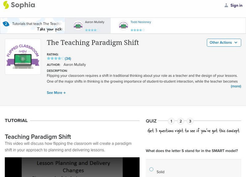Show classroom teachers how flipping the classroom will change the way they will teach and deliver their lesson. Write good, measurable learning objectives to incorporate into their flipped lesson on Sophia.org. This lesson is 1 of 3 in...