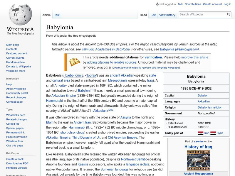Wikipedia provides a paragraph of information on Babylonia, an ancient state in Mesopotamia. Includes hyperlinked terms.