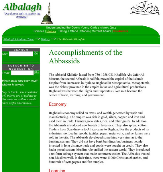 An extensive description of the wealth and prosperity of Baghdad during the reign of the Abbasids. Describes the economy and the learning which took place there.