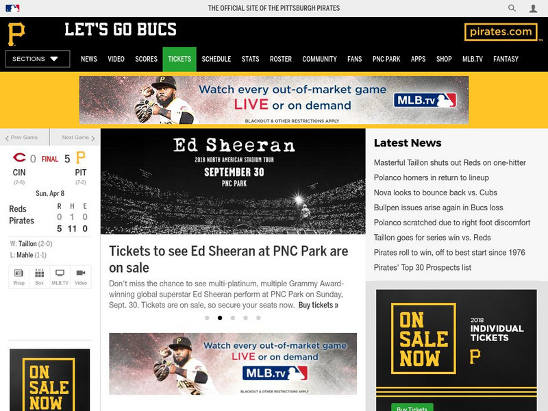 Pittsburgh Pirates - official site of the Pirates, offering news, scores, stats, ticket information, and more.