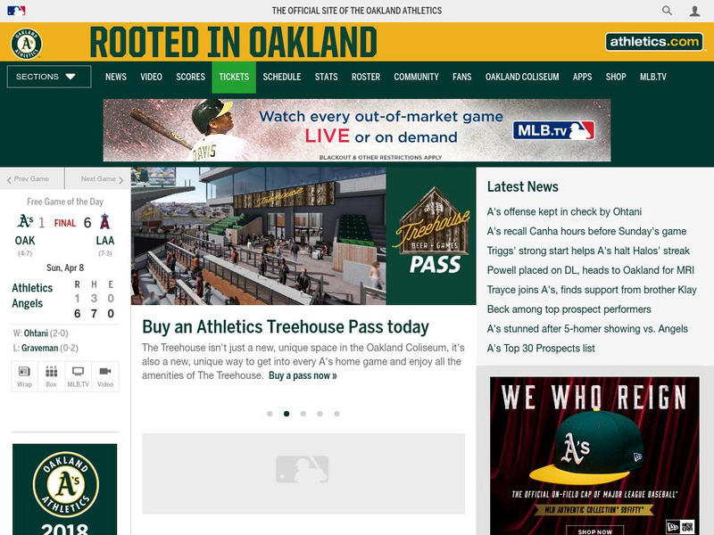Official site of the Oakland Athletics, featuring up-to-date stats and results, player bios, minor league info, ticket and merchandise ordering info, player photos, and audio highlights