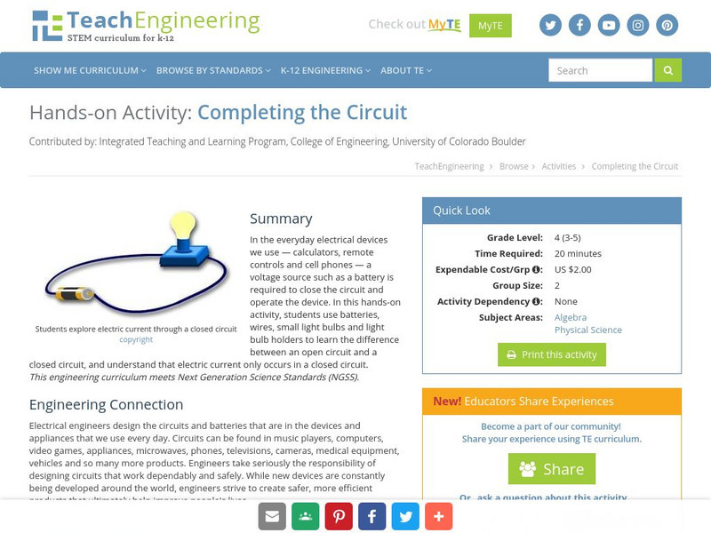 For this interactive activity, learners will explore electricity and be able to design and create a complete electrical circuit. Students will also learn what is necessary to light a light bulb. Creative thought, ideas, and,...