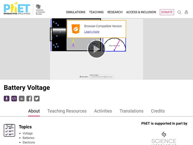University of Colorado: Ph Et Interactive Simulations: Battery Voltage