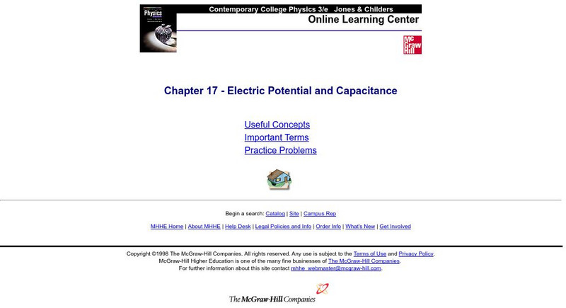 A series of pages which define key terms and explain basic concepts related to electric potential. Includes a set of practice problems with answers and solutions.