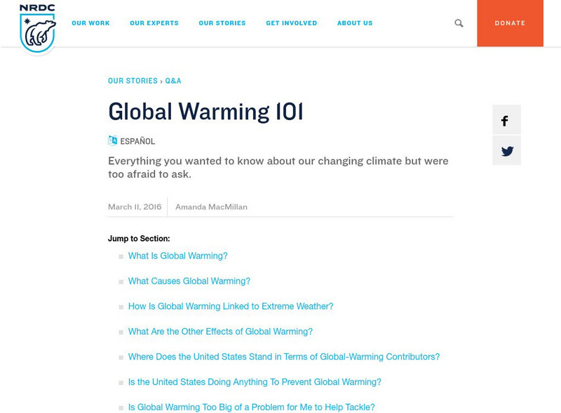 The Natural Resources Defense Council (NRDC) offers a section focusing on frequently asked questions about global warming. Learn what causes global warming, if the earth is really getting hotter, whether or not there is cause for...