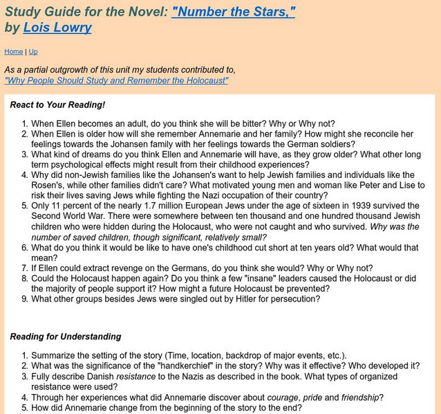 This site a sixth grade teacher offers this collection of discussion/study questions and classroom activities.