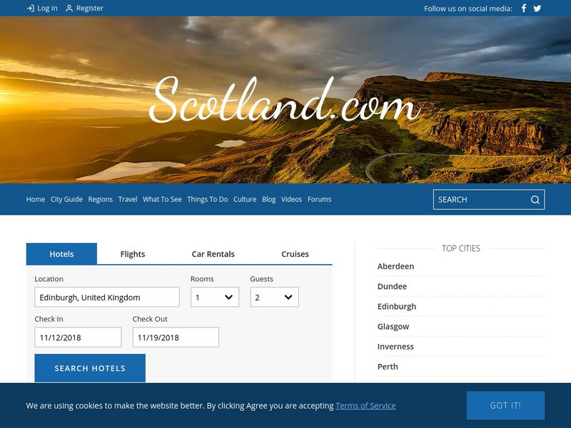 Basic facts and travel information about Scotland. Information is available about business, community, travel, culture, news, sports, and shopping.