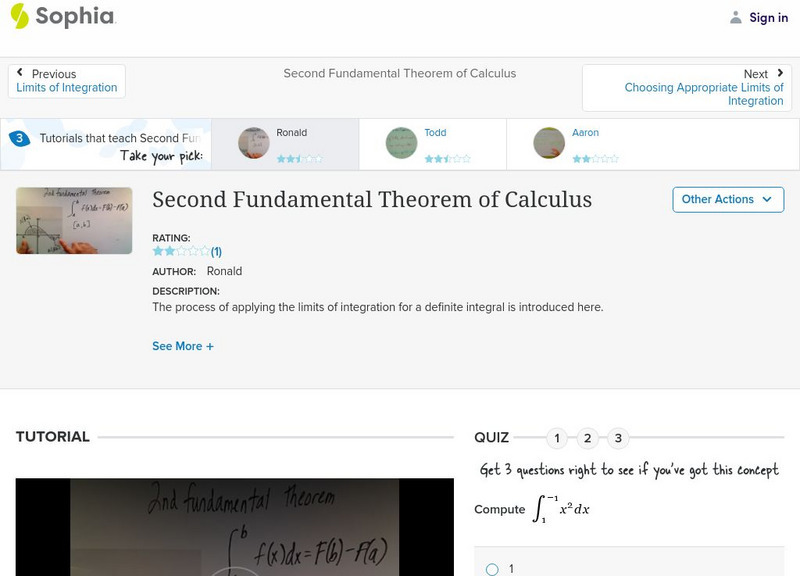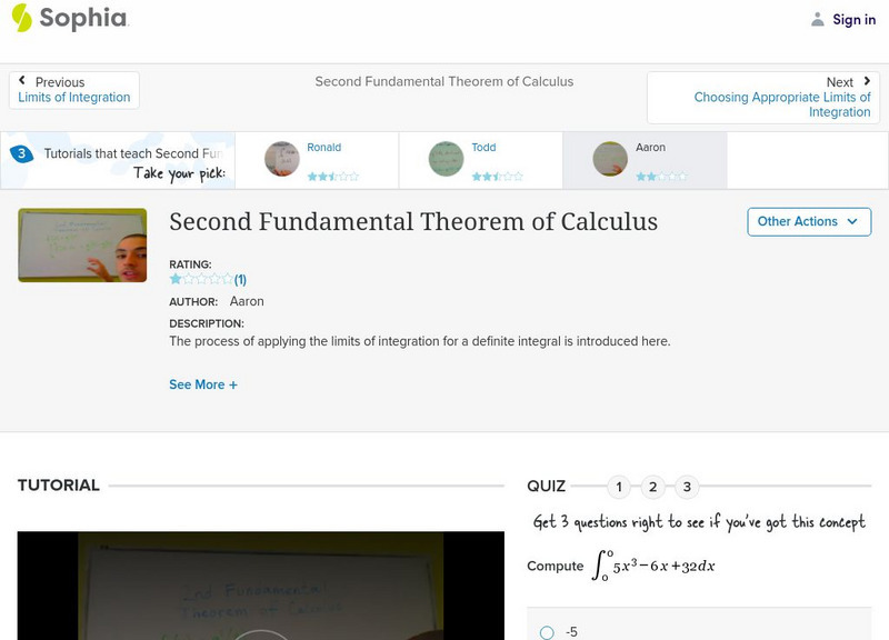 Sophia: Second Fundamental Theorem of Calculus: Lesson 2