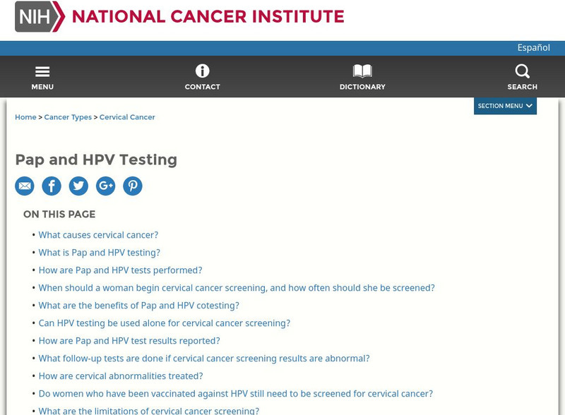 National Cancer Institute: Cancer Topics: Fact Sheet: Pap Test
