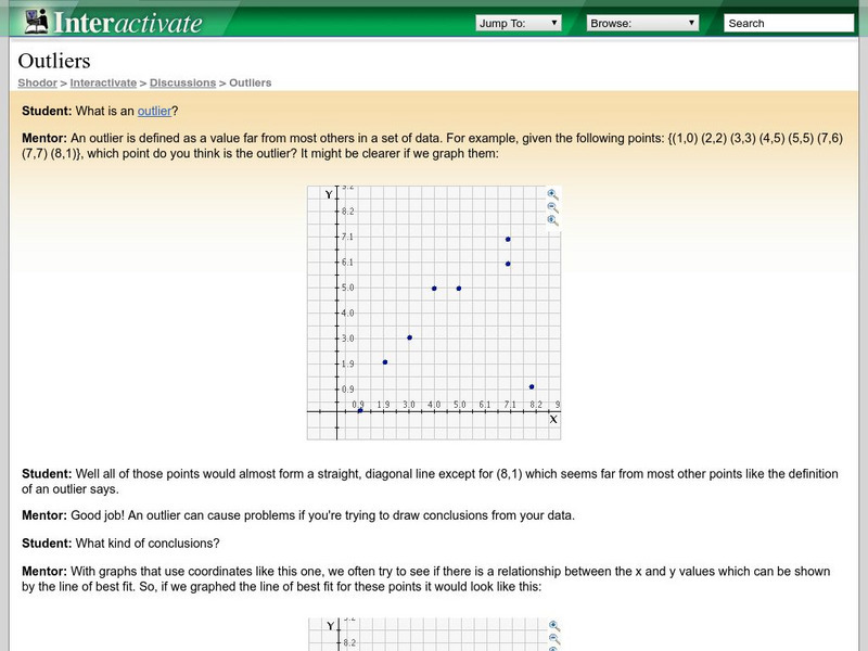 Students learn about box-and-whisker plots. The interactive box plot allows the user to explore maximum, minimum, median, upper quartile, lower quartile, and outliers.