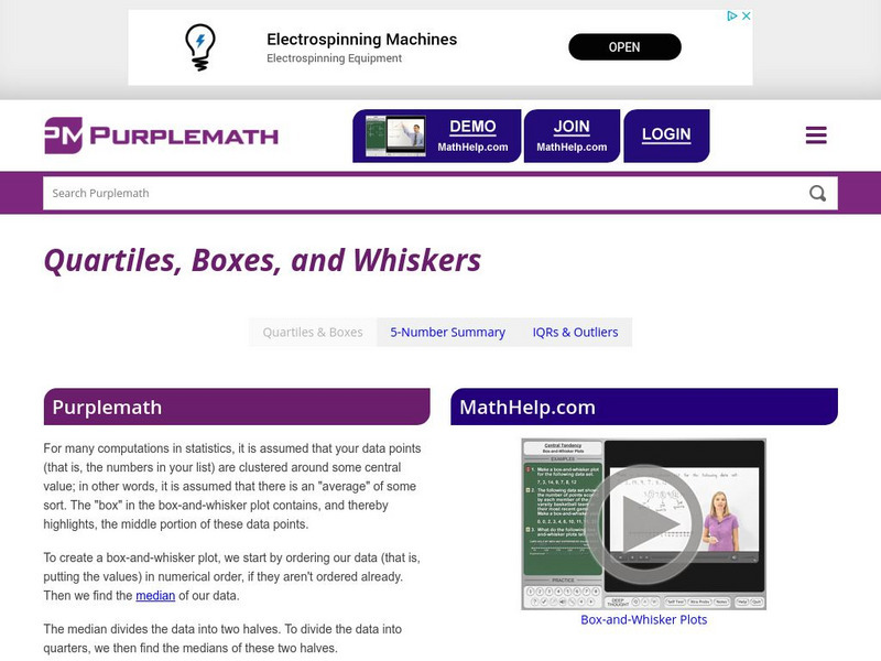 Varsity Tutors: Hotmath: Algebra Review: Box and Whisker Plots
