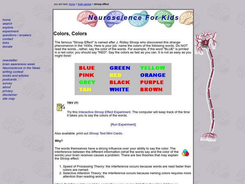 University of Washington: Neuroscience for Kids: Stroop Effect