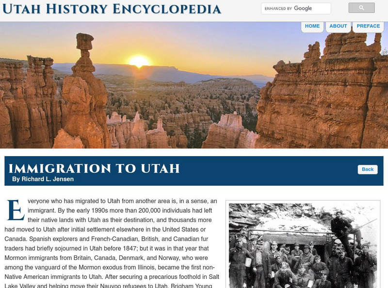 Uen: Utah History Encyclopedia: Immigration to Utah