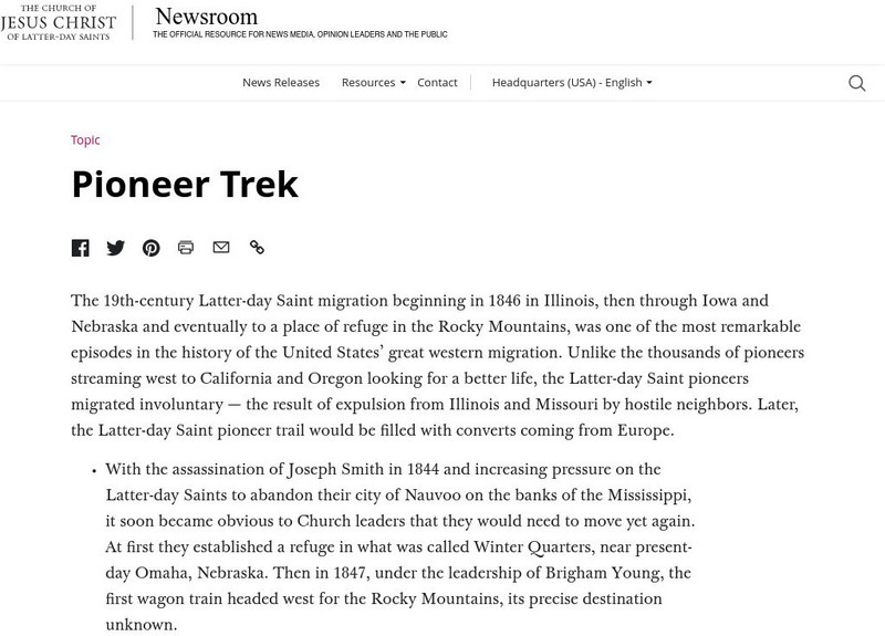 Pioneer Story: The Mormon Pioneer Trail