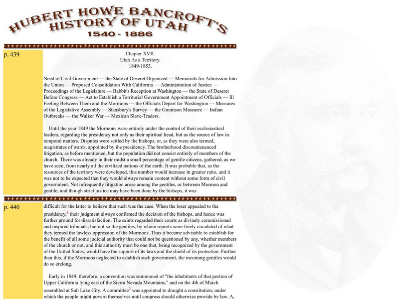 A chapter from Bancroft's history of Utah, published in 1899, that discusses the Utah Territory.
