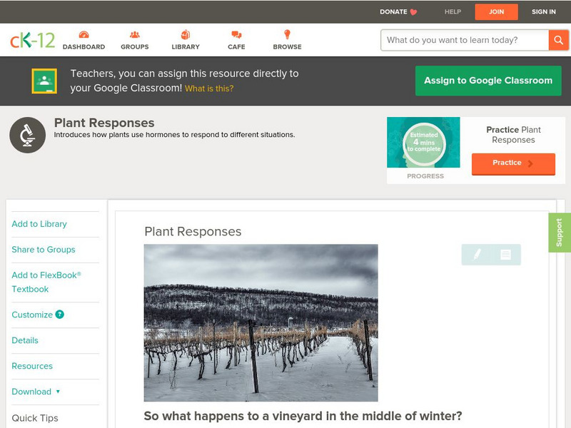 [Free Registration/Login may be required to access all resource tools.] Describes ways that plants respond to environmental stimuli.