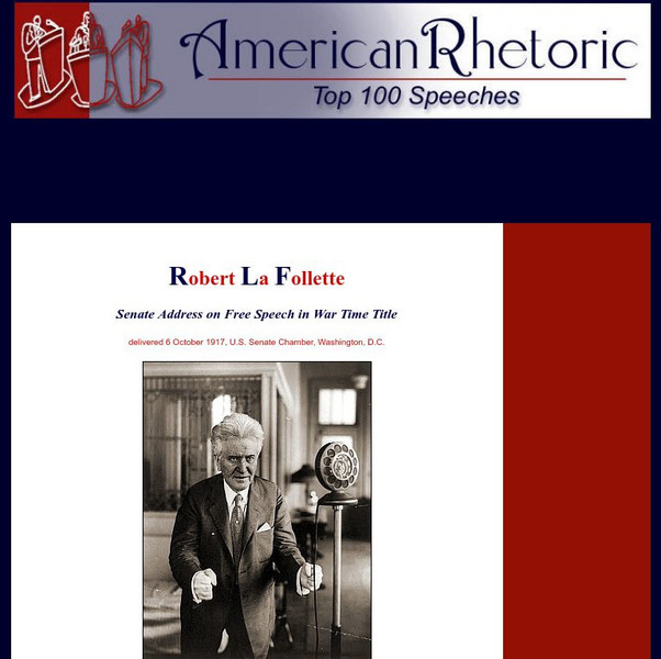 American Rhetoric: Robert La Follette: Senate Address:"free Speech in War Time"