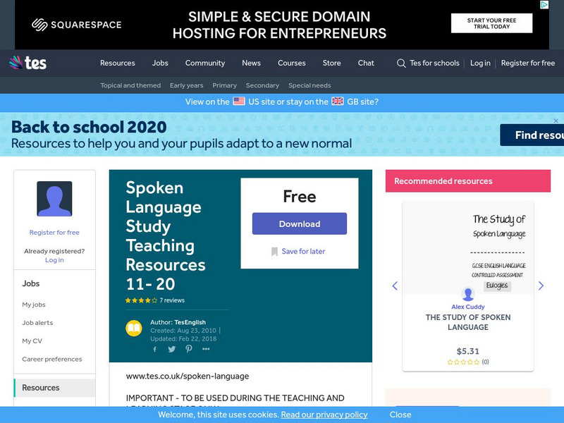 Tes: Spoken Language Study Teaching Resources 11 20