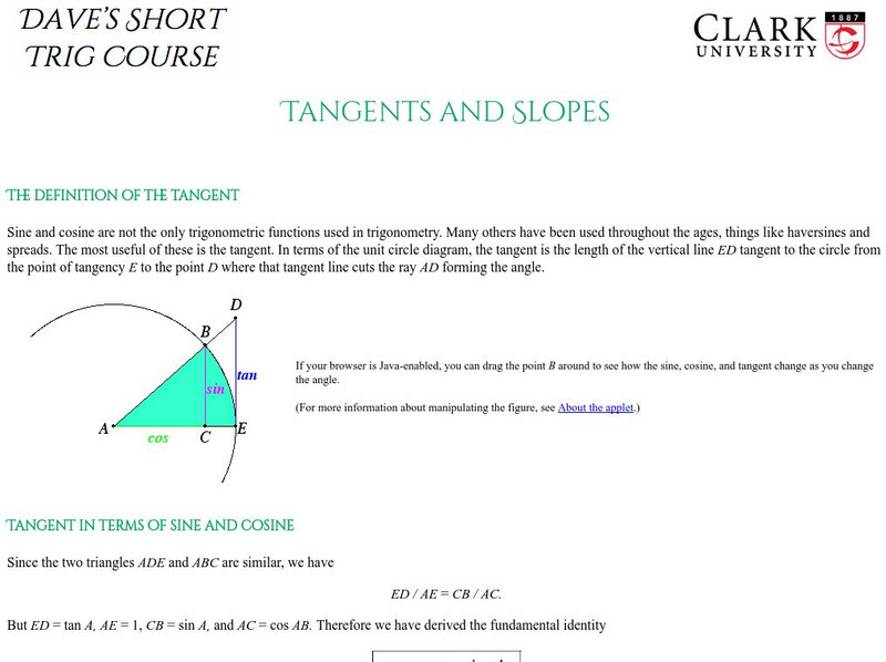 Clark University: Dave's Short Trig Course: Tangents and Slopes