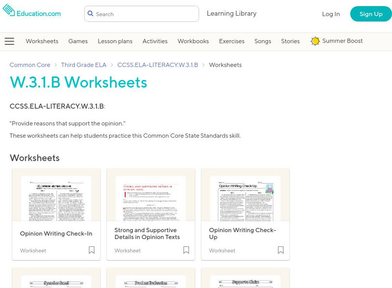 Education.com: W.3.1 Worksheets: Write Opinion Pieces on Topics or Texts