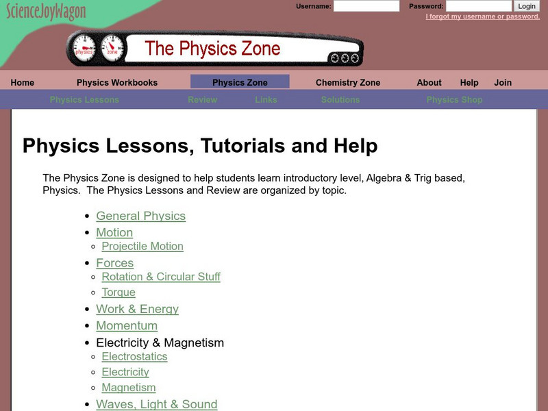 These physics lessons and tutorials are designed to be a resource for learning introductory level, algebra-based physics. Organization is by topic, but a search option is available for quickly finding specific information. Although most...