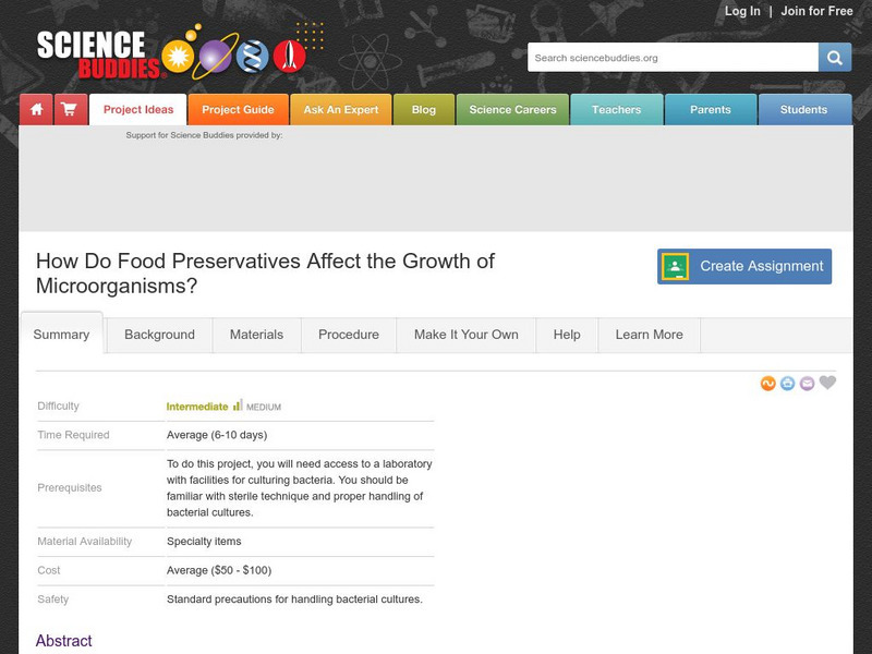 Science Buddies: Effects of Food Preservatives on the Growth of Microorganisms