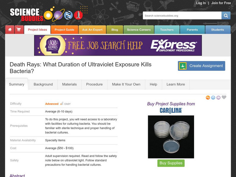 Science Buddies: What Duration of Ultraviolet Exposure Kills Bacteria?