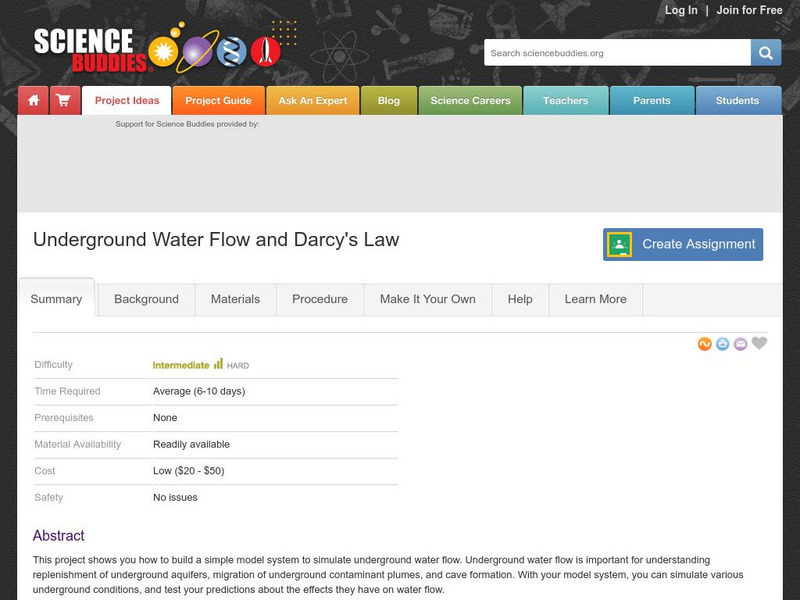 Science Buddies: Underground Water Flow and Darcy's Law