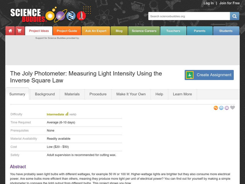 Science Buddies: Measuring Light Intensity Using the Inverse Square Law