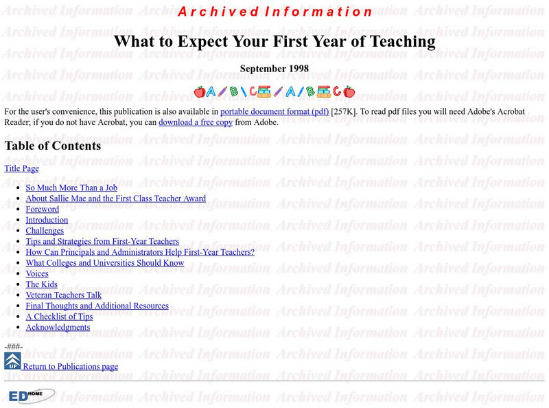 U. S. Department of Education: What to Expect Your First Year of Teaching