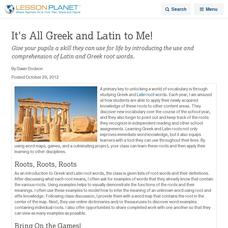 Students explore Latin and Greek roots. In this vocabulary lesson plan, students create a board game featuring Greek and Latin roots.