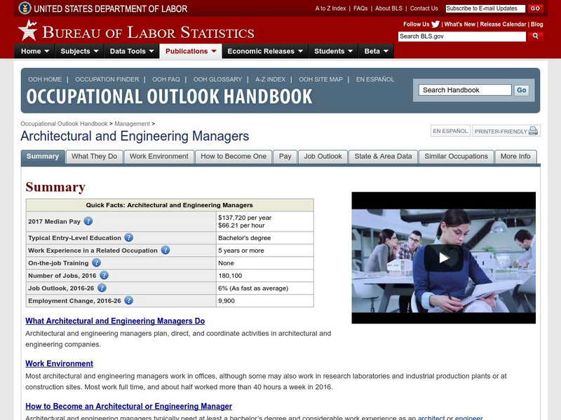 Bureau of Labor Statistics: Architectural and Engineering Managers