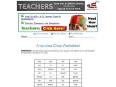 In this Antarctica words worksheet, students analyze a chart that contains words that have been chopped in half. Students find the pieces that fit together and write them on the lines. All words pertain to Antarctica.