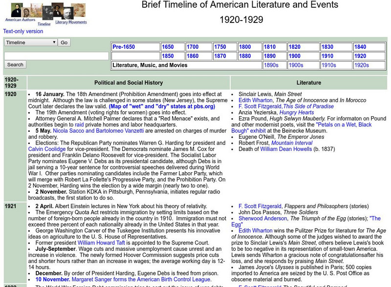 Washington State University: Brief Timeline of American Literature and Events: 1920s