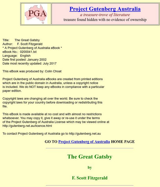 Project Gutenberg Australia: The Great Gatsby (Full Text)