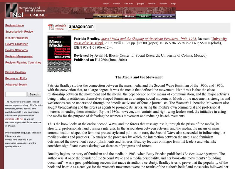 Presented is a review of a book by Patricia Bradley that looks at the feminist movement in the 1960s and 1970s, and its relationship to the media. Read about how the media bolstered the ideas of the movement by way of the activism of its...