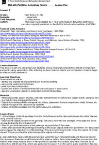 Learners choose meaningful objects for a still-life arrangement and paint it using watercolors and write an artist’s statement. In this still life art lesson, students identify and analyze the characteristics of a still-life...