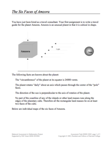 Here's a task that is out of this world! Given a description of a fictional cube-shaped planet, scholars answer a set of questions about the planet. They create a two-dimensional map and consider the distances between locations on the map.