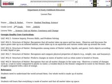 Students explore solids, liquids, and gases. In this states of water lesson, students conduct a scientific investigation that requires them to observe and note the differences among solid, liquids, and gases.