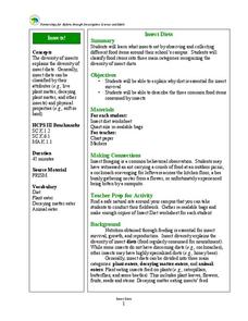 Students explore the diet of insects. In this "insects" biology lesson, students take a nature walk and collect various natural materials they think may be eaten by insects. Students sort and classify these materials into three diet...