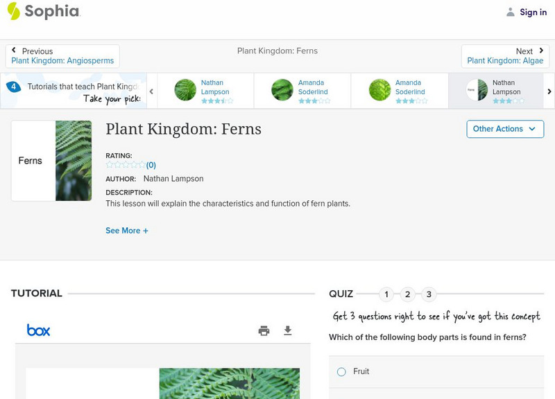 Sophia: Plant Kingdom: Ferns: Lesson 3