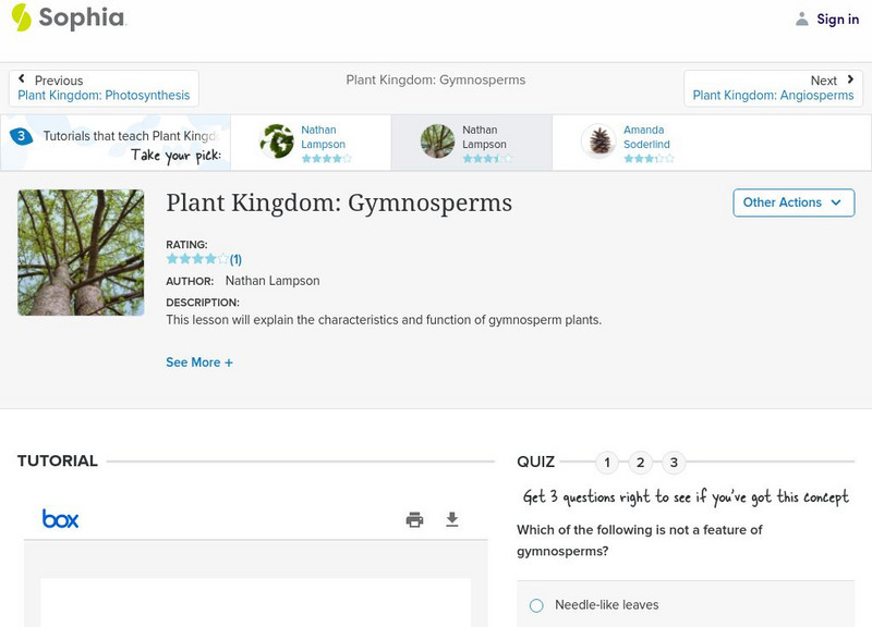 Sophia: Plant Kingdom: Gymnosperms: Lesson 1
