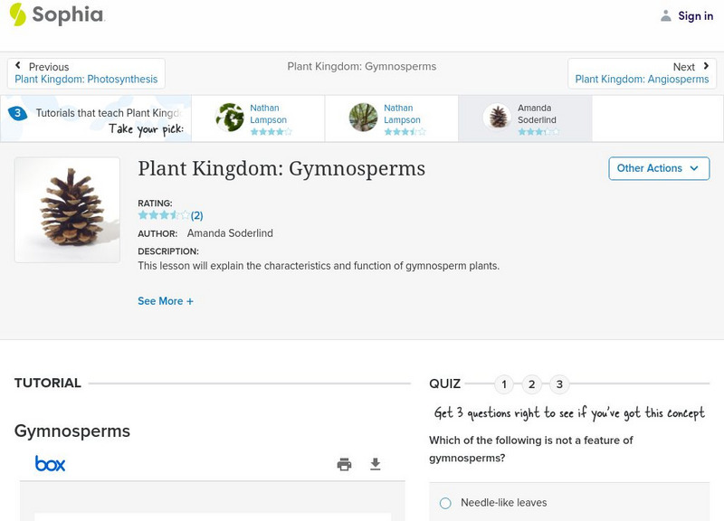 Sophia: Plant Kingdom: Gymnosperms: Lesson 3